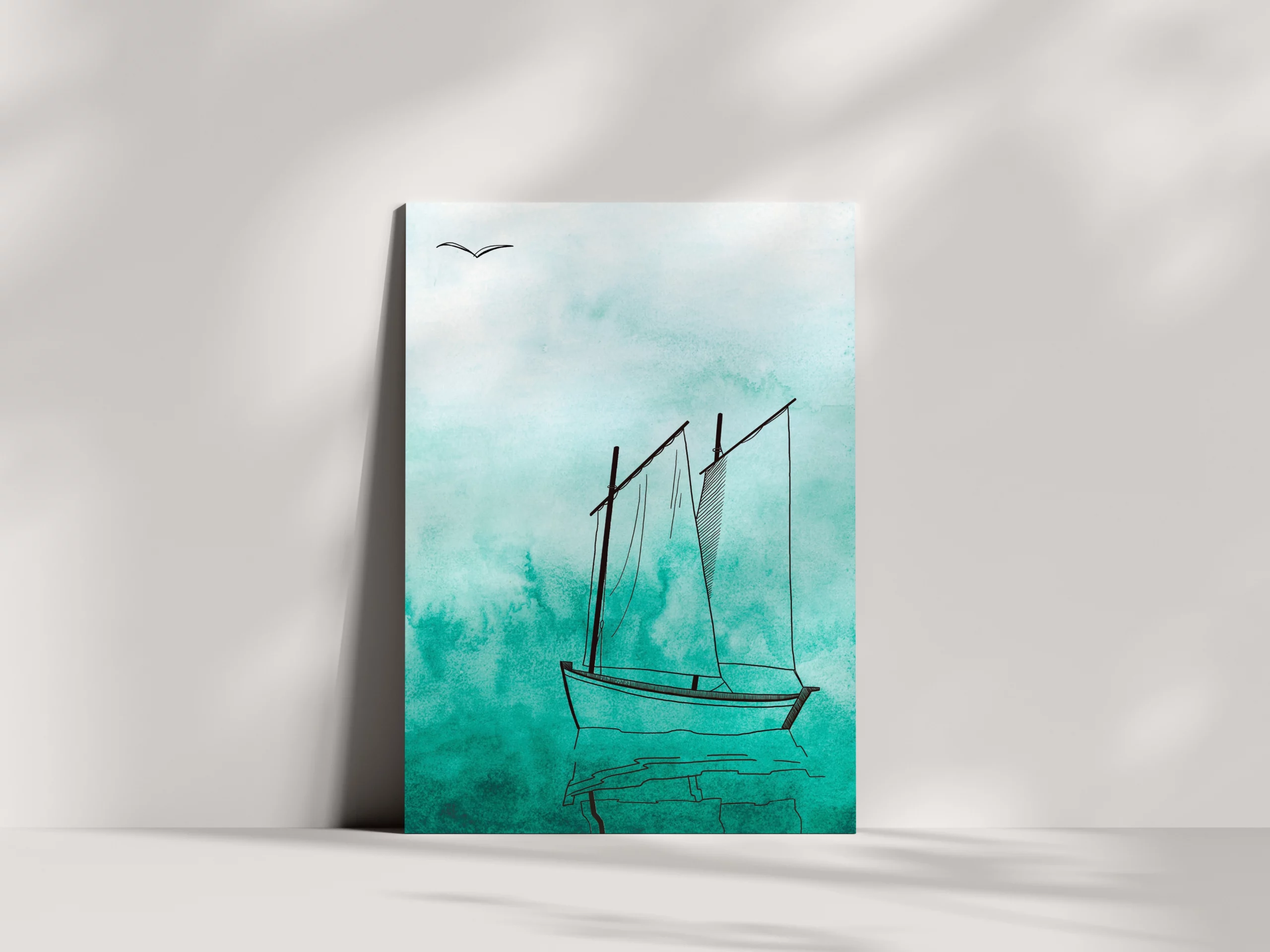 Vogue le bateau et vole la mouette. Sinagot sur les flots, depuis Séné ma bien-aimée. Idéal une décoration épurée et monochrome.
