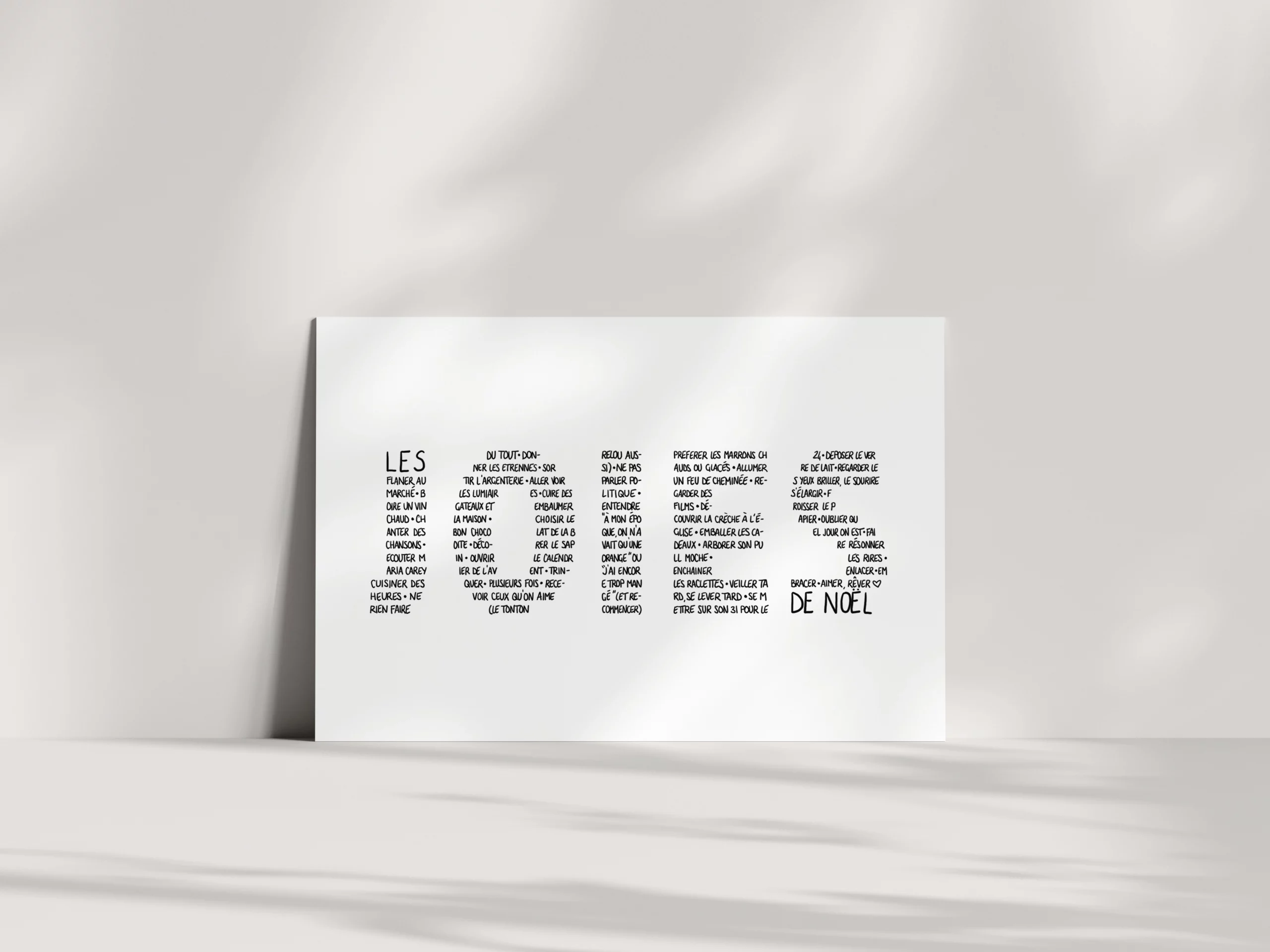 Ecouter Maria Carey, choisir le bon chocolat de la boite, recevoir ceux qu’on aime (tonton relou aussi), ne pas parler politique, entendre « j’ai encore trop mangé » et recommencer, arborer son pull moche, enchainer les raclettes, regarder les yeux briller et les sourires s’élargir, oublier quel jour on est, enlacer embrasser, aimer, rêver
